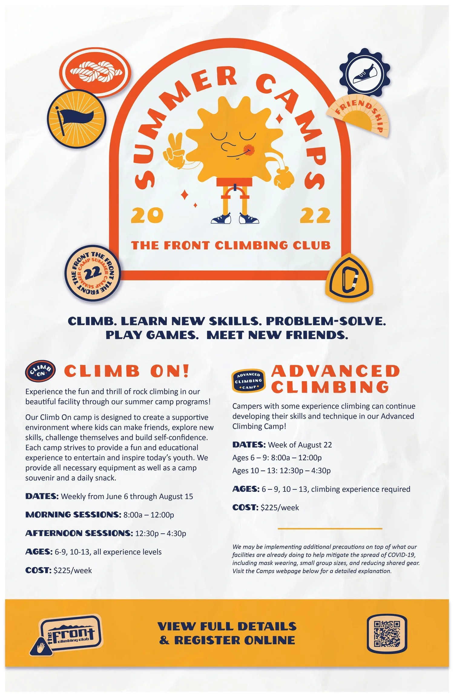 The Front Climbing Club, one of the first commercial climbing gyms in the country, is a gathering of incredible humans, built from passionate climbers, outdoor enthusiasts, and health-minded individuals. On any given day, you'll find me dreaming up a new event poster, art directing a photoshoot, creating social stories, creating new merchandise and so much more.